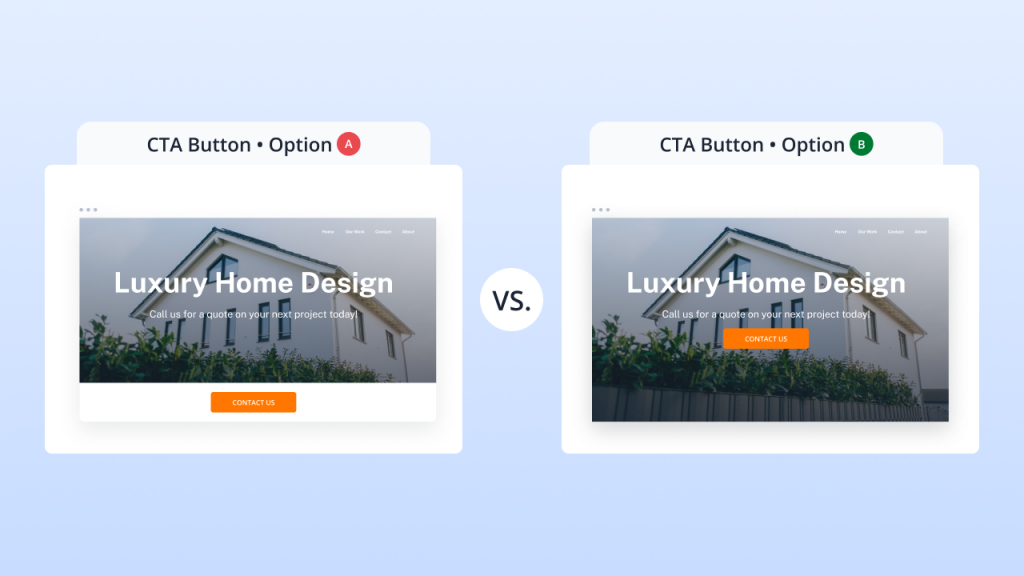 One of the most common web page tests is CTA placement. In one version, the button might sit at the bottom of the hero image, while in another it’s placed prominently at the center.