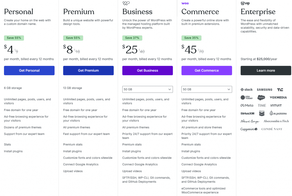 Although Hostinger doesn’t offer a free plan, they have some of the most affordable options among Squarespace alternatives on this list. Here’s the complete list: