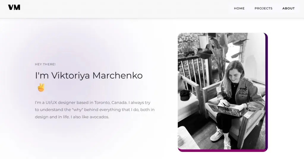 - About me. Share what drives your work and your specialties. Keep it human—mention your design style or approach.