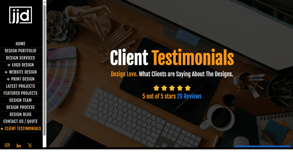 For example, instead of just saying “Logo design,” frame it as “Creating brand identities that connect with your audience.” Pair this with a clear call-to-action, like a button that says, “Let’s Work Together,” so visitors know exactly how to get in touch.