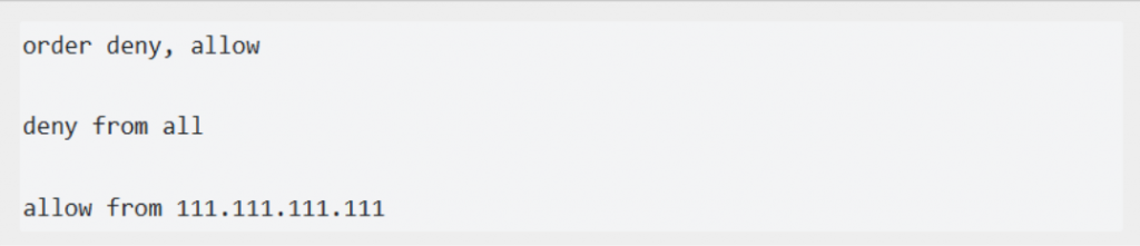 - In the .htaccess file, add Cloudflare IPs. For a single IP, add allow from before the address. It should look like this: