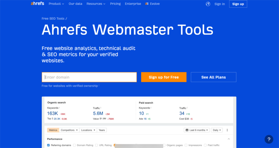 - Ahrefs Webmaster Tools (AWT)