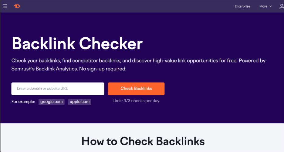 - SEMrush Backlink Analytics