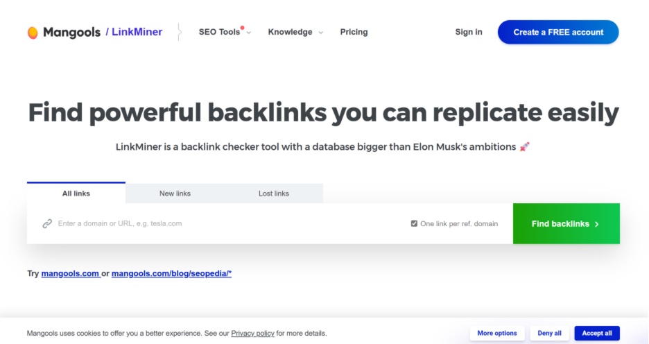 LinkMiner | Finds and evaluates backlinks with filters and link previews | Bloggers and small teams qualifying link prospects faster |