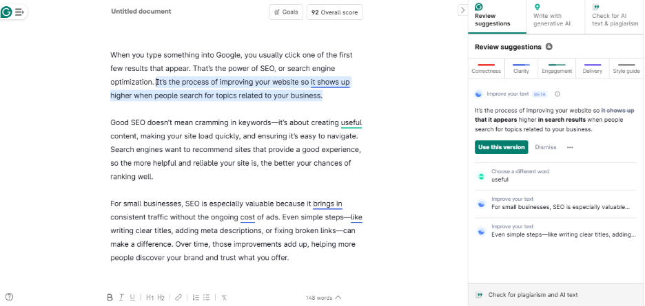 It also offers suggestions for clarity and tone so your writing matches your brand voice and remains engaging for readers.