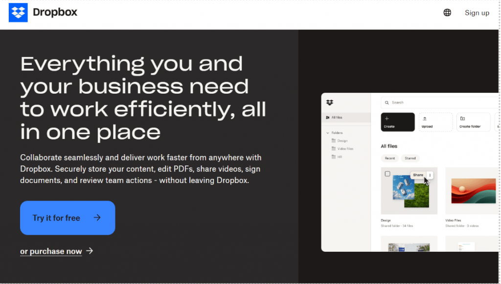 Dropbox’s site has a minimalist design that uses clear calls to action and adaptive typography. Its content is prioritized for mobile, making it easy to understand the product and sign up regardless of screen size.