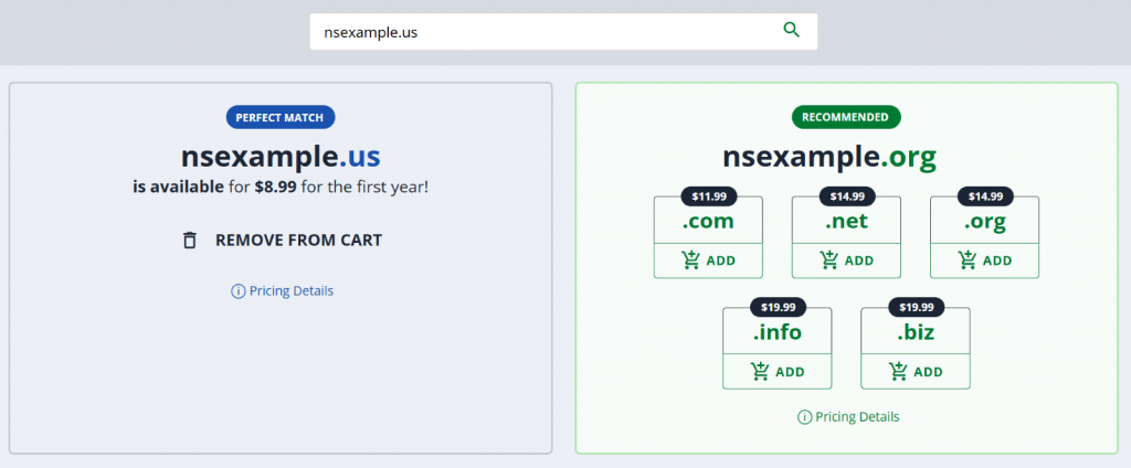 - Select your domain and add it to your cart. Once you’ve found an available ccTLD to your liking, select it and add it to your cart. You’ll have options for registration periods (e.g., 1 year, 2 years, up to 10 years).